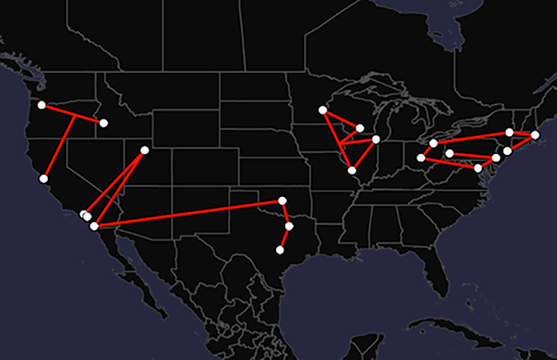 - TMBG | They Might Be Giants arranged their upcoming tour to spell out the band's initials (see above). Awesome! No idea why they only included the map in their email blast and not on the tour page.