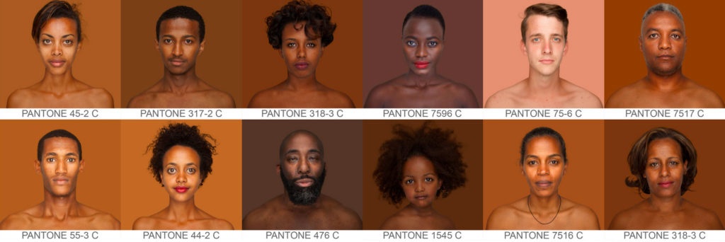 - The Humanæ art project catalogs human skin tones | "After snapping a portrait of a volunteer subject, Brazilian artist Angélica Dass extracts a sample of 11x11 pixels of his or her face and matches it to the corresponding Pantone color."