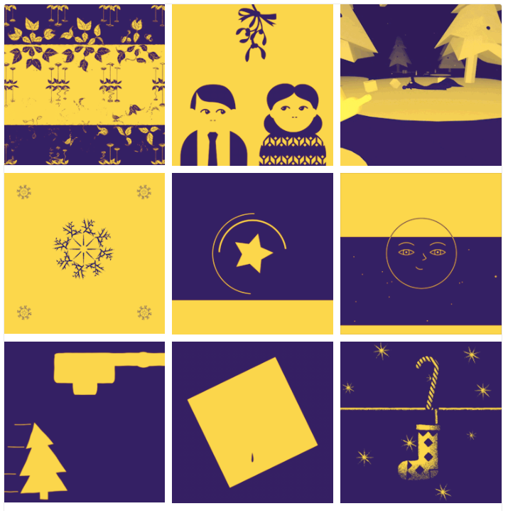 - 9 Squares | "An international collaboration of 9 different designer/animators. Each designer creates an abstract, 350px, 3 second animated square to make up a single GIF loop, from a 4-colour palette."