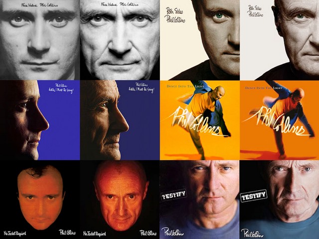 - Phil Collins past and present | "When six of Phil Collins' albums were recently remastered, he went back and recreated the covers as well."