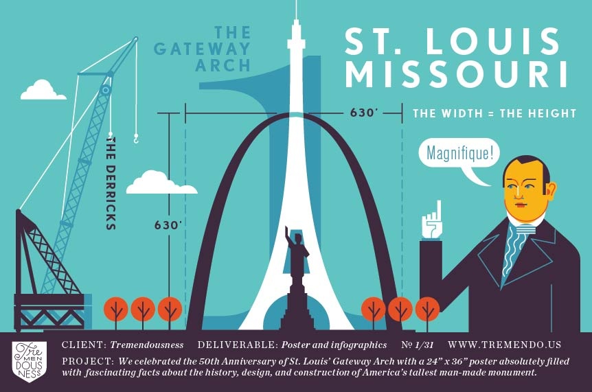 - PROJECT: We celebrated the 50th Anniversary of St. Louis’ Gateway Arch with a 24” x 36” poster absolutely filled with fascinating facts about the history, design, and construction of America’s tallest man-made monument.