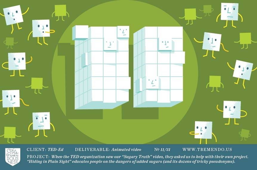 - PROJECT: When the TED organization saw our “Sugary Truth” video, they asked us to help with their own project. “Hiding in Plain Sight” educates people on the dangers of added sugars (and its dozens of tricky pseudonyms).