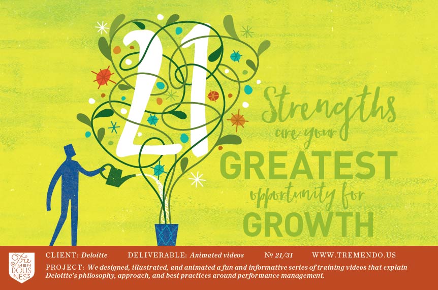 - PROJECT: We designed, illustrated, and animated a fun and informative series of training videos that explain Deloitte’s philosophy, approach, and best practices around performance management.