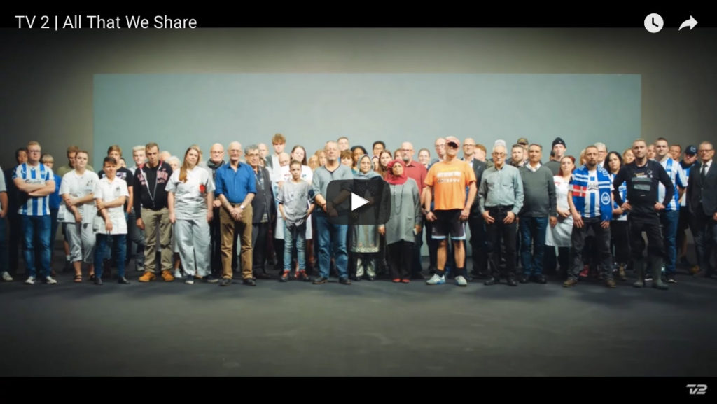 - A Powerful Danish Ad Showing That People From All Walks of Life Have More in Common Than Not | "In “All That We Share“, a truly powerful ad for Danish television station TV 2, people from varying backgrounds (city-dweller, farmer, wealthy, middle-class) were segregated into boxes taped onto the floor. Responding to questions posed by a mediator, members to whom the question was relevant moved out of their box and in with others who also responded positively. Each person quickly learning that they had more in common with others than not, incorporating an important message of tolerance, understanding and perhaps even friendship."