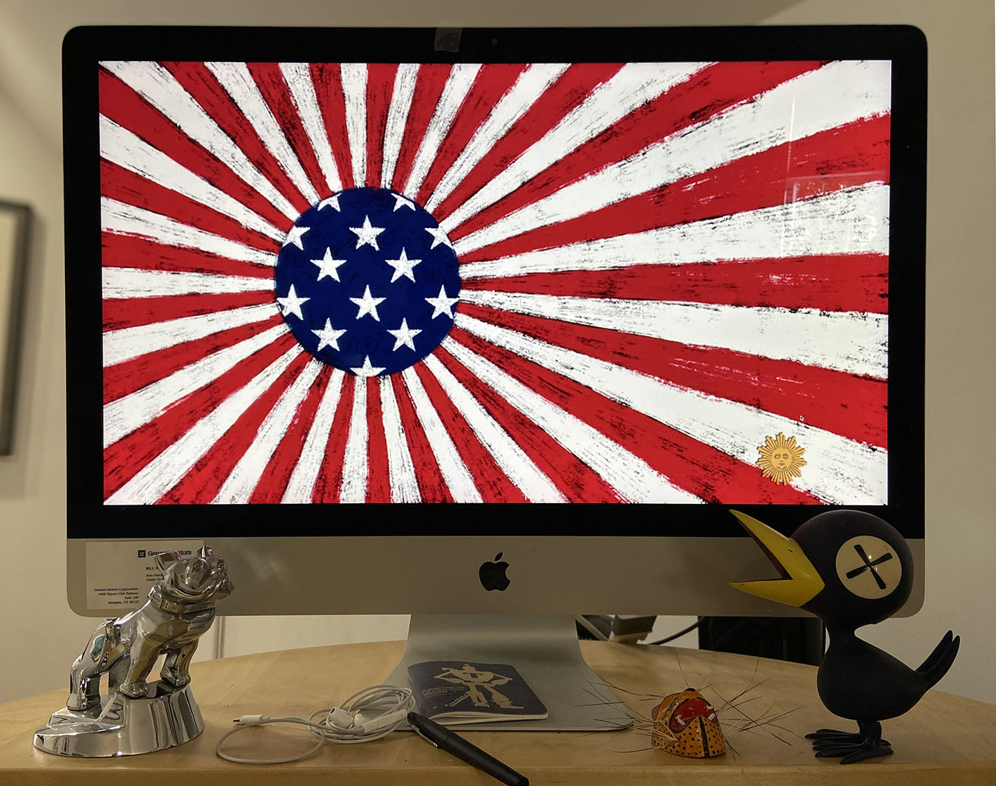I was surprised and thrilled that my flag art aired on January 10, 2021. The show opened with a recap of the week’s headlines—most notably the march on Capitol Hill and the ensuing riots. They closed with footage from September 9, 2011, showing legislators on the Capitol steps singing “God Bless America” and then crossfaded to the art I had sent in just six weeks ago.
