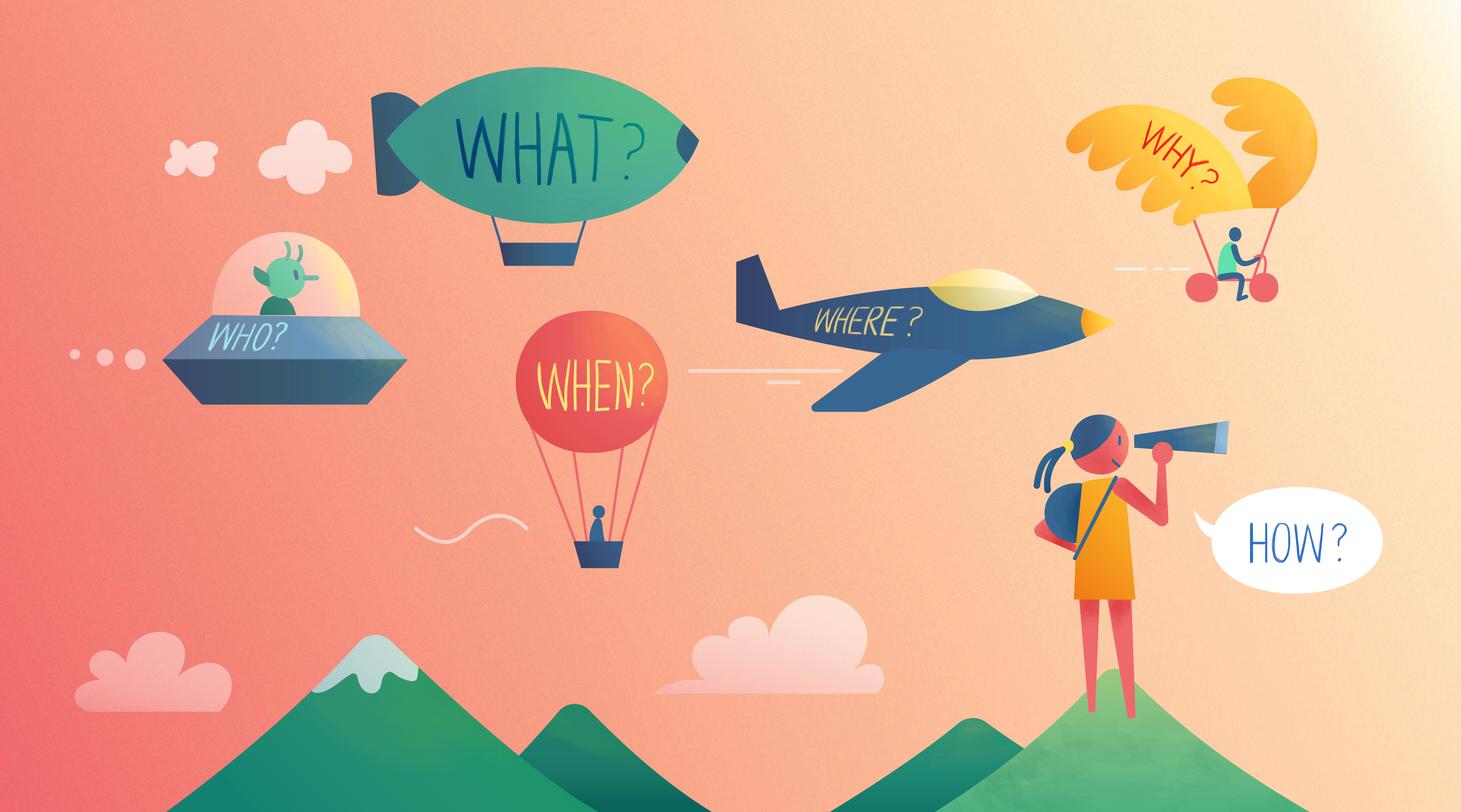 In journalism—or any kind of information gathering—questions establish focus and engage readers’ attention. Reporters learn to start with the “five W’s”: who, what, where, when, and why (plus how). But questions also act as signposts when designing a visual communication. Different kinds of questions relate to different types of visuals. So thinking about what question(s) you need to answer is a great place to start when designing visual communication.