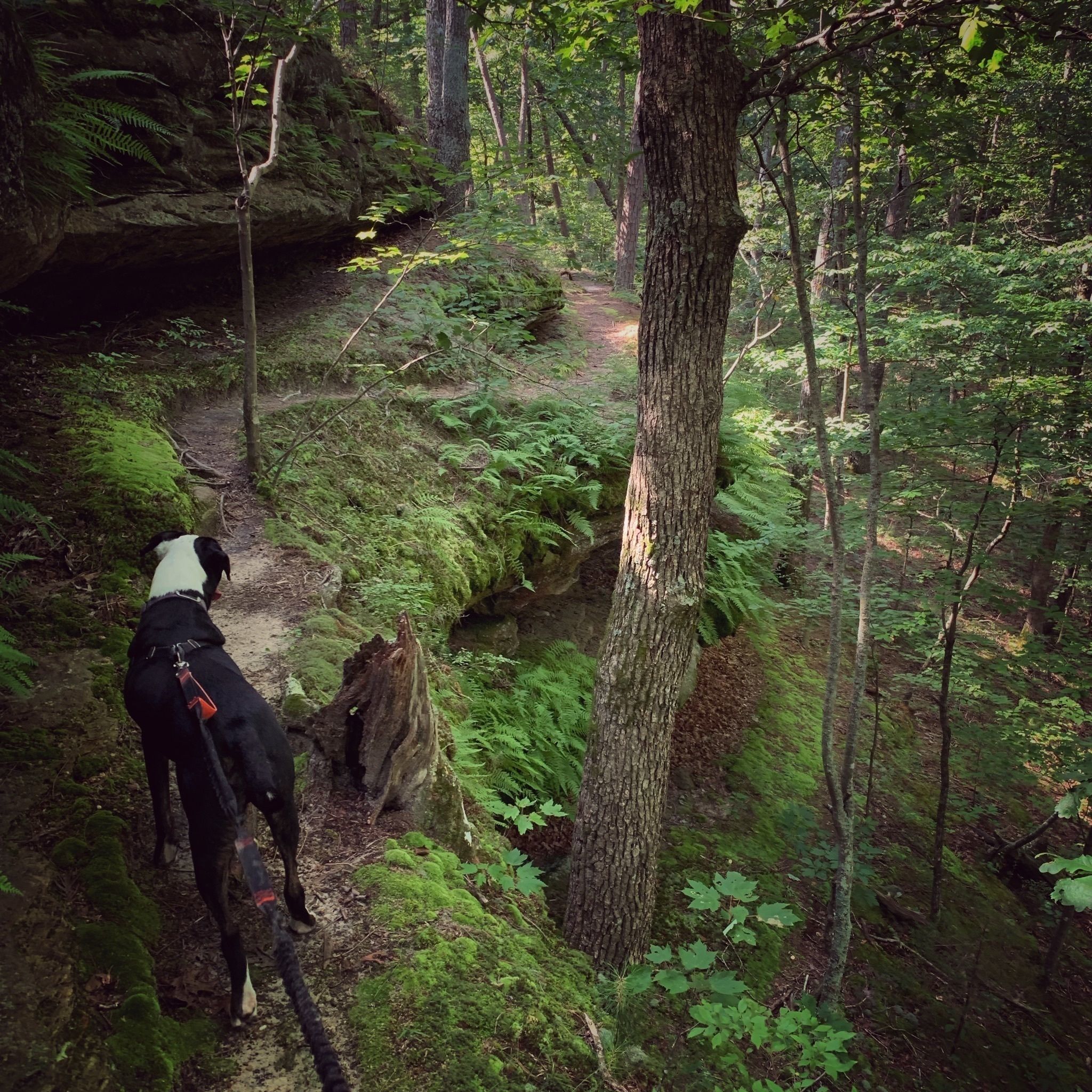 Wilderness Loop, Meramec State Park, 1:15 from STL | Awesome variety, really beautiful, easy to follow, an absolute favorite. You can make it a ~10 mile loop or shorten it to maybe half that using a cut-over trail. If you go in April the spring wildflowers are intense! Takes a little over an hour to get there from STL. Several other shorter trails in the park, too.