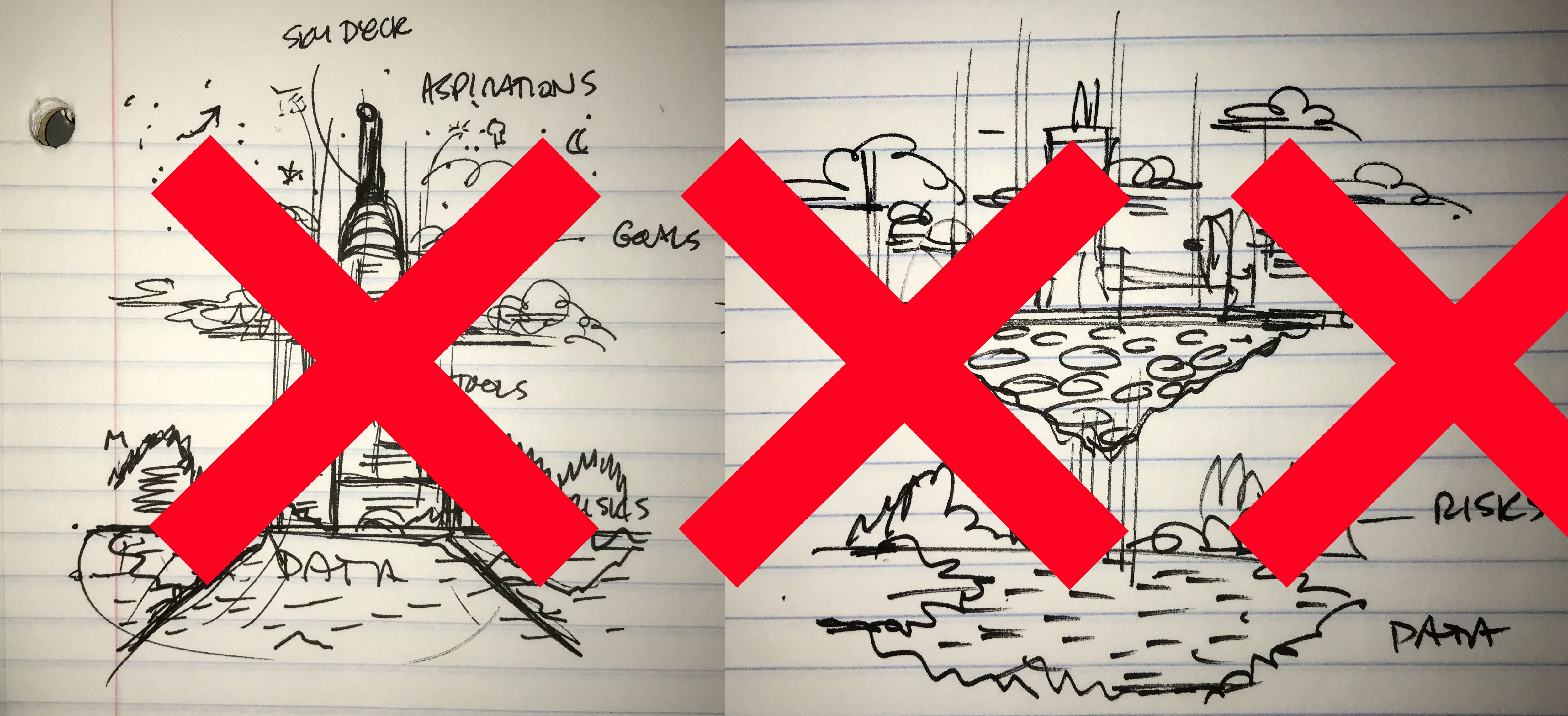 The lesson here is not that it always takes a million calls or sketches to figure out the solution—it's just that there are so many possibilities for how illustrative infographics can come to life. It's a challenge to understand enough to get started. It's a challenge to find those first possibilities. It's a challenge to change them. It’s a challenge to come up with new ideas. It's a challenge to combine them. It's a challenge to discard them. It's a challenge to make decisions and a challenge to make concessions. But these challenges are part of the journey—even on the “easy” projects.