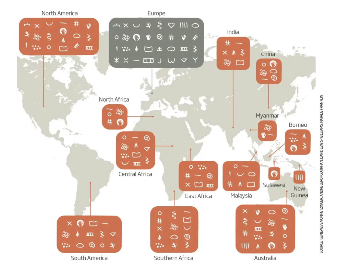 - Stone Age Cave Symbols May All Be Part of a Single Prehistoric Proto-Writing System | "While studying some of the oldest art in the world found in caves and engraved on animal bones or shells, paleoanthropologist Genevieve von Petzinger has found evidence of a proto-writing system that perhaps developed in Africa and then spread throughout the world."