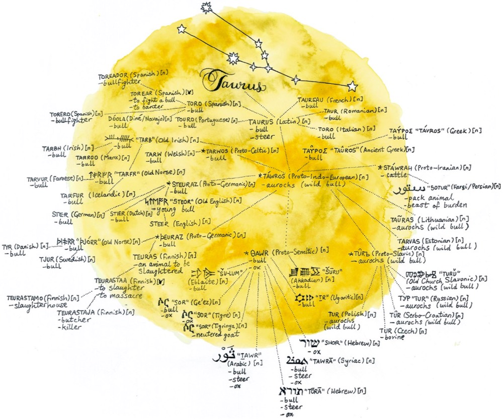 - Linguistic Constellations | "Illustrator Jerry M. Wilson has drawn a series of constellations that explore the etymology of the constellations’ names and related words in several languages."