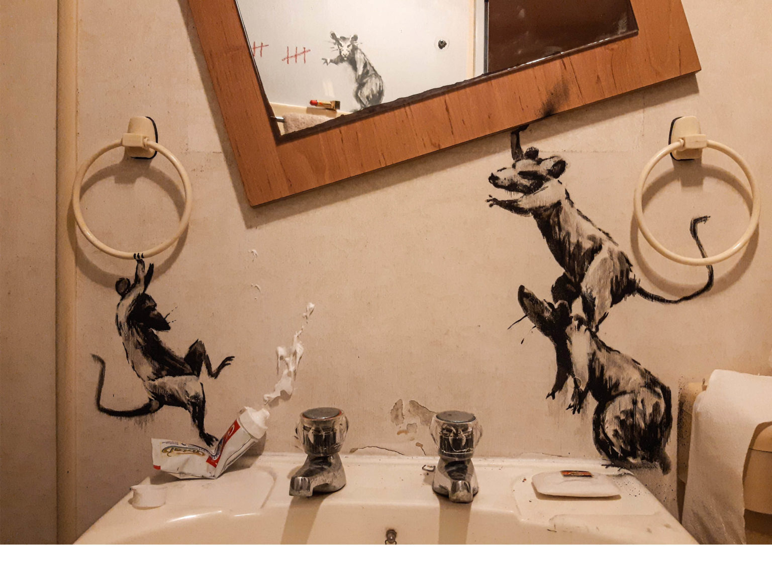 - “My Wife Hates it When I Work From Home” | "Banksy shares Rats Run Amok in his bathroom from quarantine."