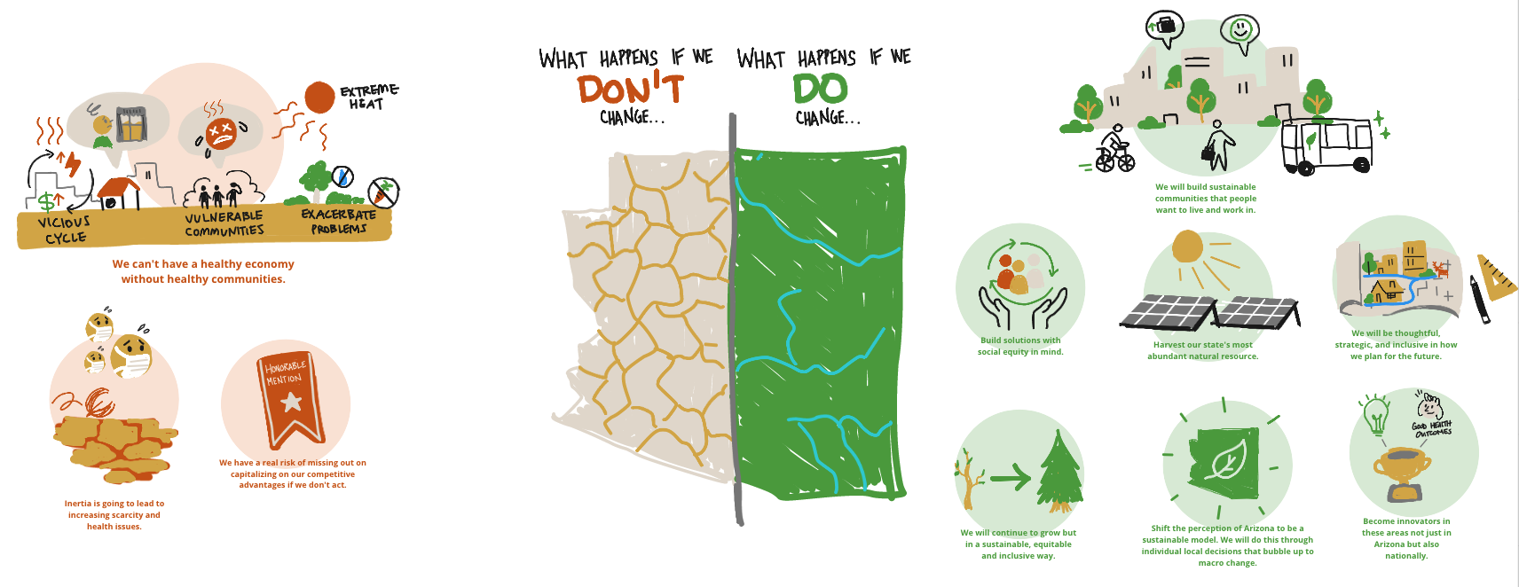 The virtual workshop brought together a group of leaders from these different sectors across Arizona. They were asked to answer two questions: What happens if we don’t change? And what happens if we do change?